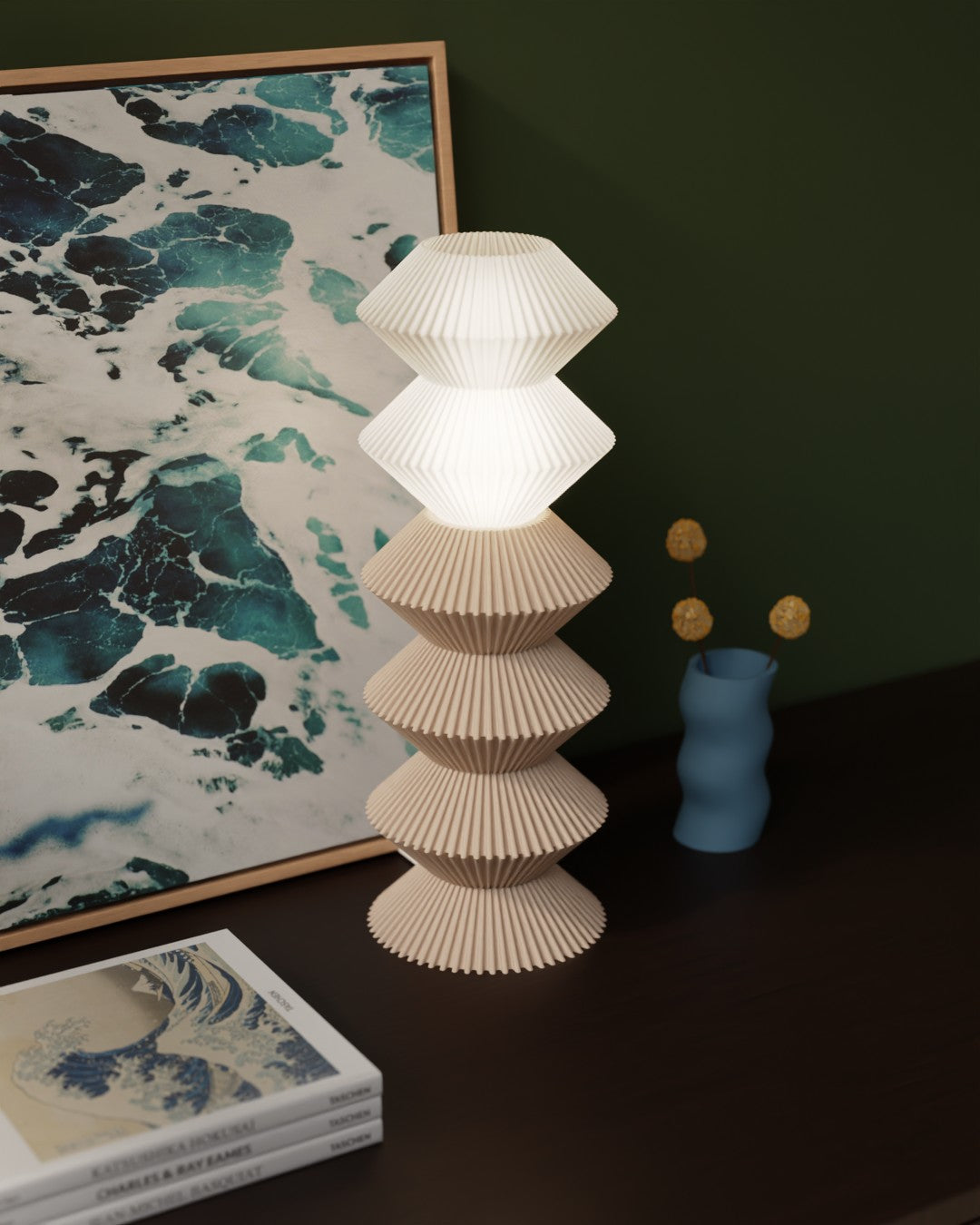 Base, body pieces, and lamp shade (fully assembled)